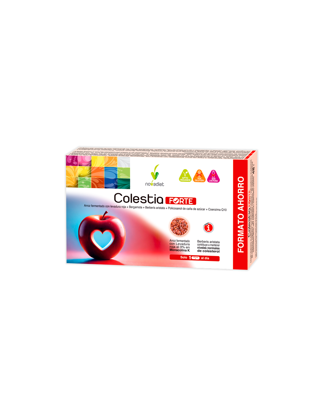FÓRMULA MEJORADA! Colestia de Novadiet es un complemento nutricional especialmente formulado para mantener unos saludables niveles de colesterol en sangre a base de Levadura roja de arroz, berberis aristata, alcachofa, coenzima Q10 y Policosanol de caña de azucar.