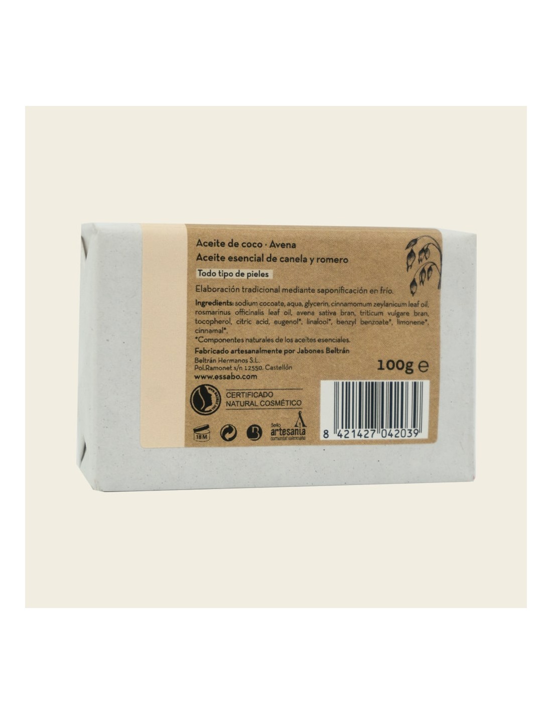 JABÓN NATURAL AVENA 100 gr. - ESSABÓ